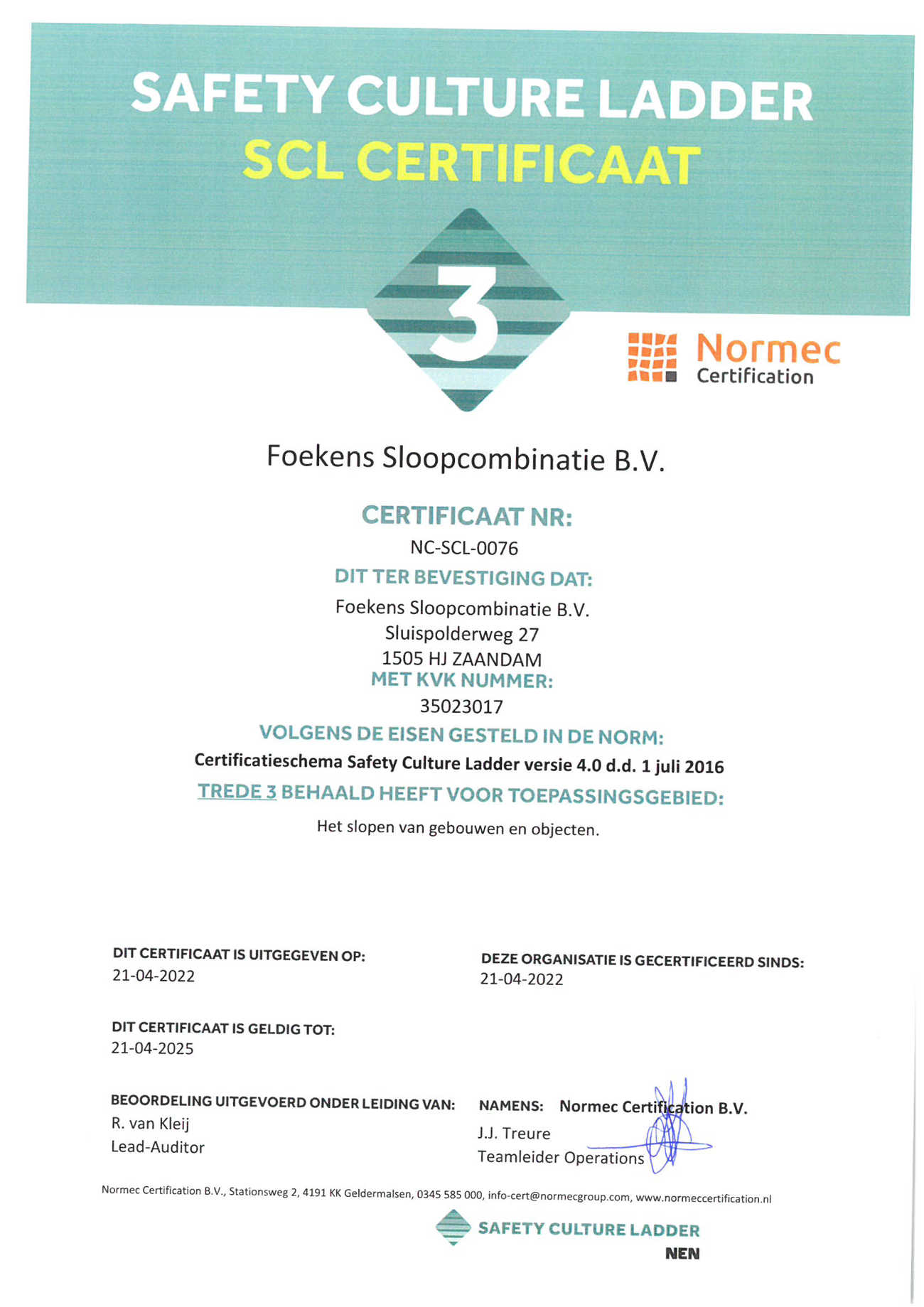 We hebben nog drie maanden te gaan in het jaar 2022, maar voor ons was dit een bewogen jaar. In dit bewogen jaar hebben we voor onszelf ambities opgesteld. Een van deze ambities was om de lightversie van de safety culture ladder trede 3 te ruilen voor de originele versie trede 3. We zijn er trots op dat we inmiddels dit certificaat aan de muur mogen hangen!