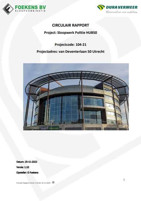 Het project is aangemeld als circulair sloopproject. Dat betekent dat het volledige traject is getoetst door een onafhankelijke certificerende instantie. Pas als alle bewijslast aantoont dat het project voldoet aan de hoogste circulaire standaarden, wordt het felbegeerde certificaat circulair slopen toegekend.